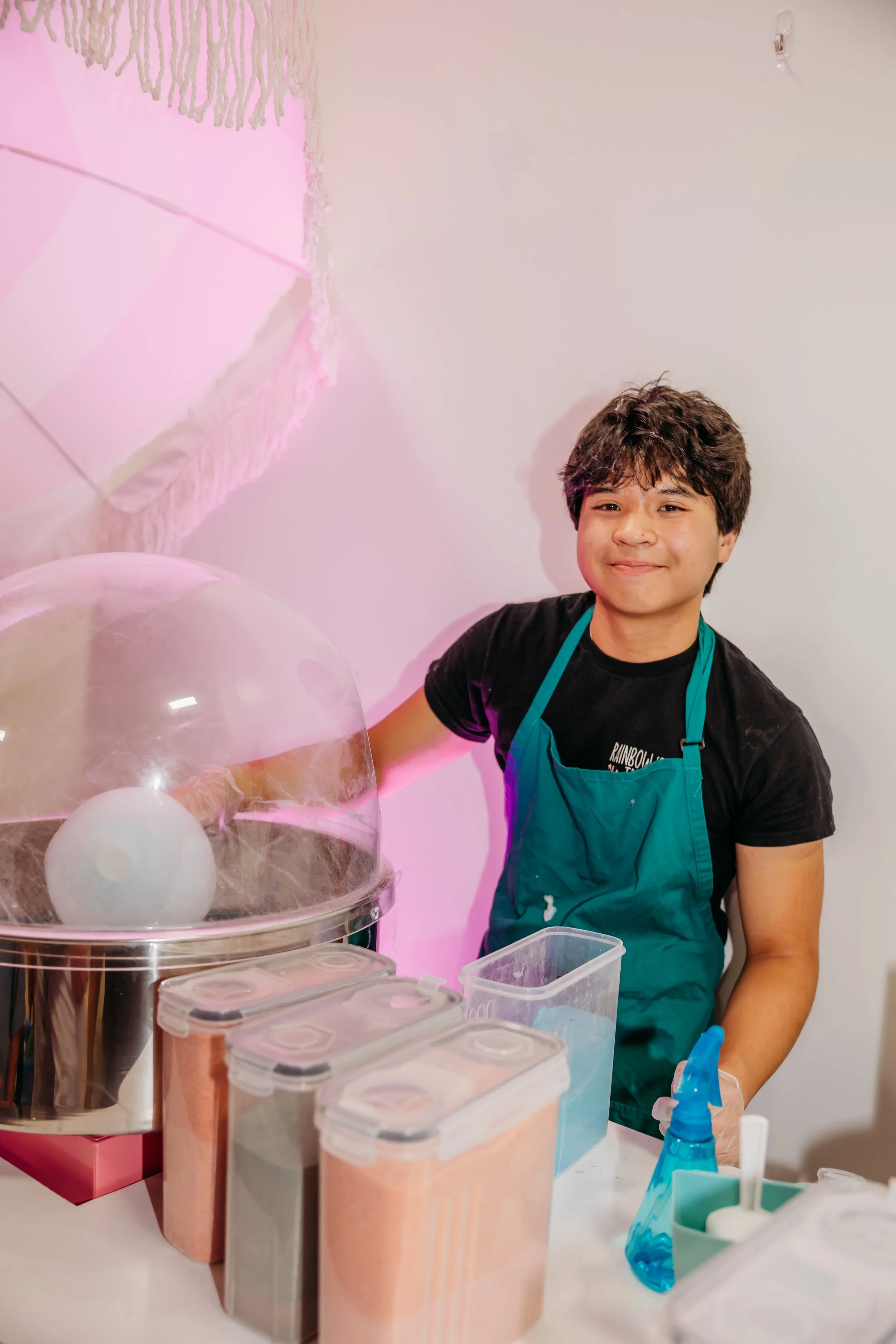 We offer on cotton candy service for you and your guests to enjoy! Let us come to your event where a Rainbow Tree team member will serve warm, fresh spun sugar to your guests!