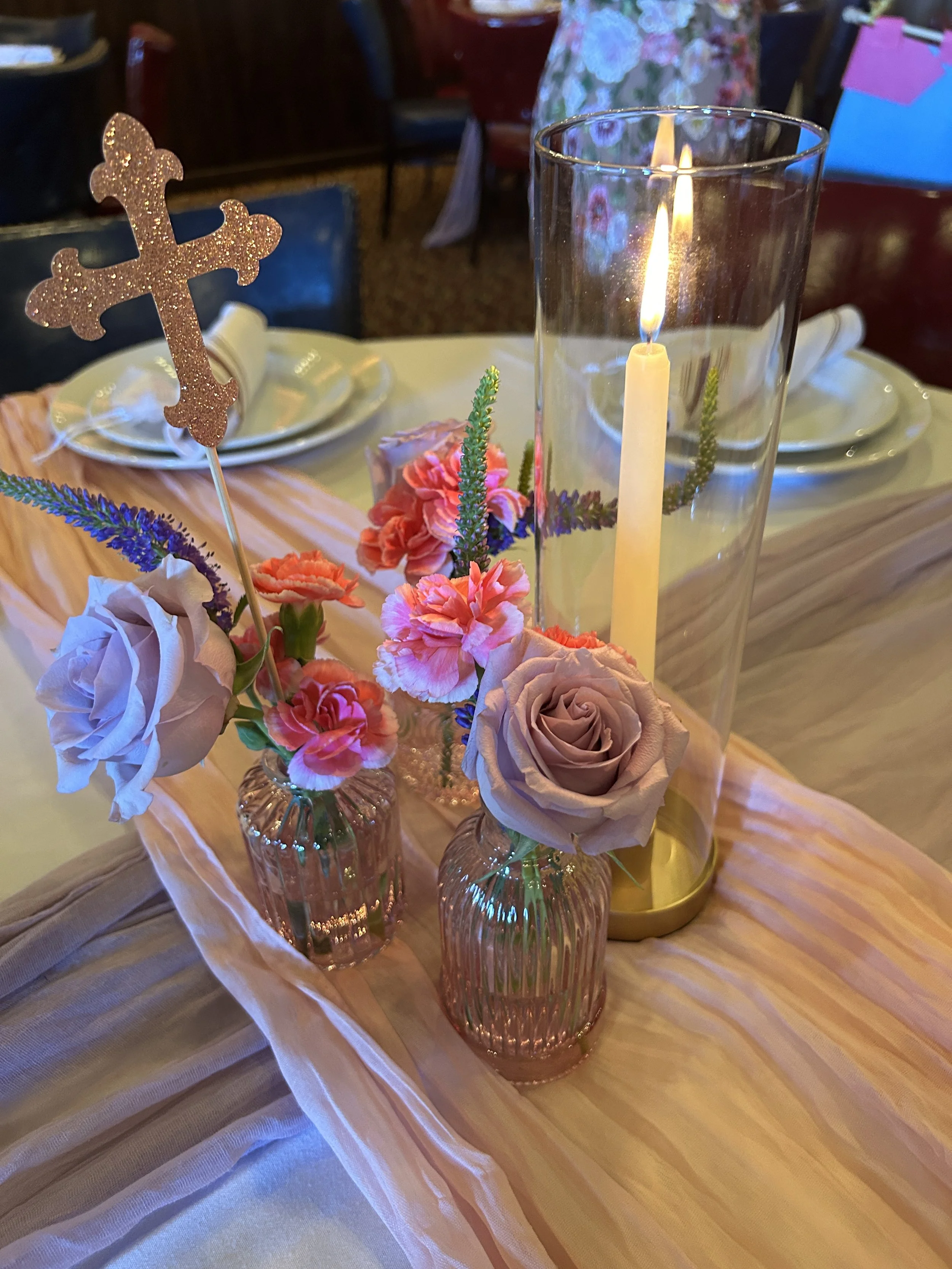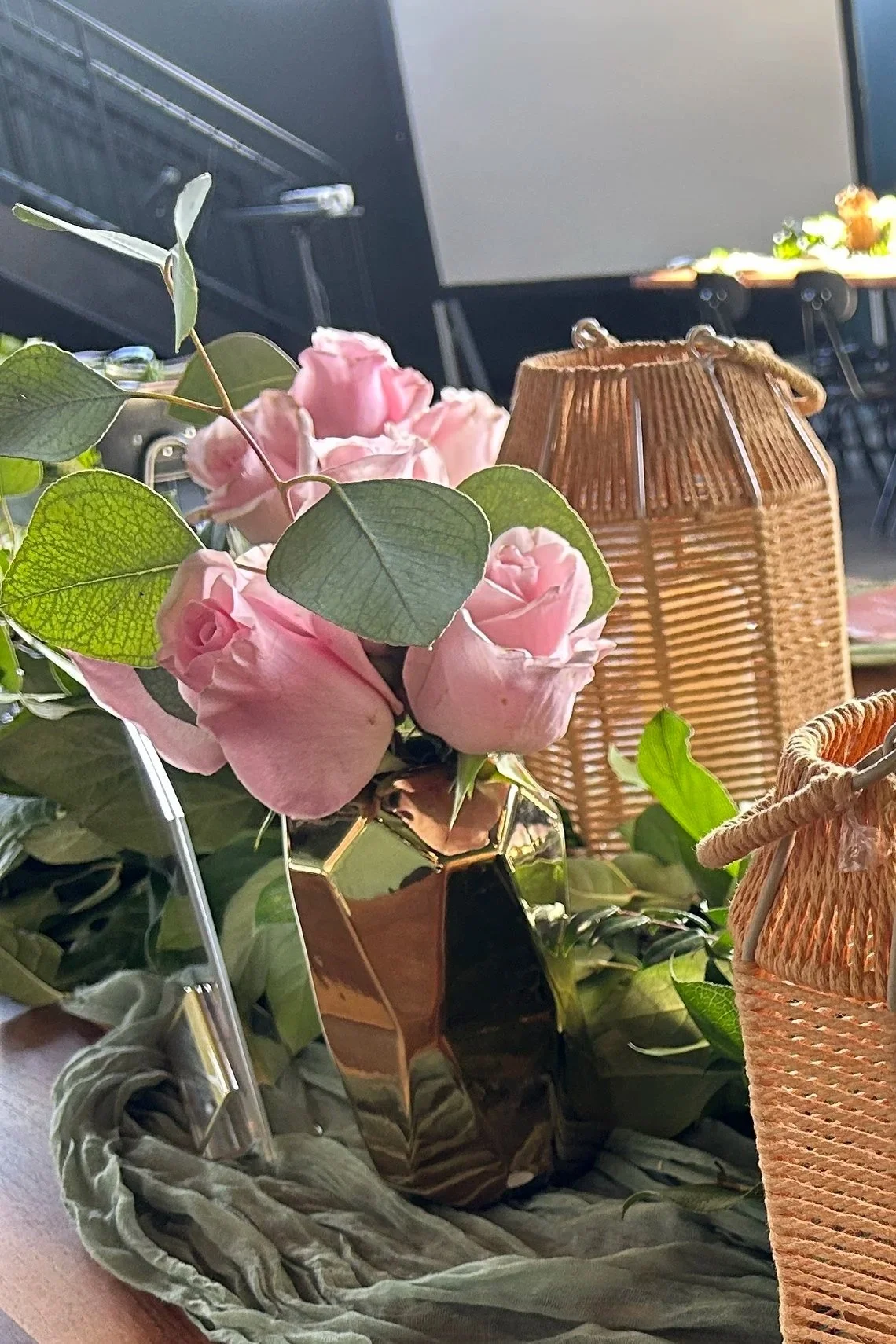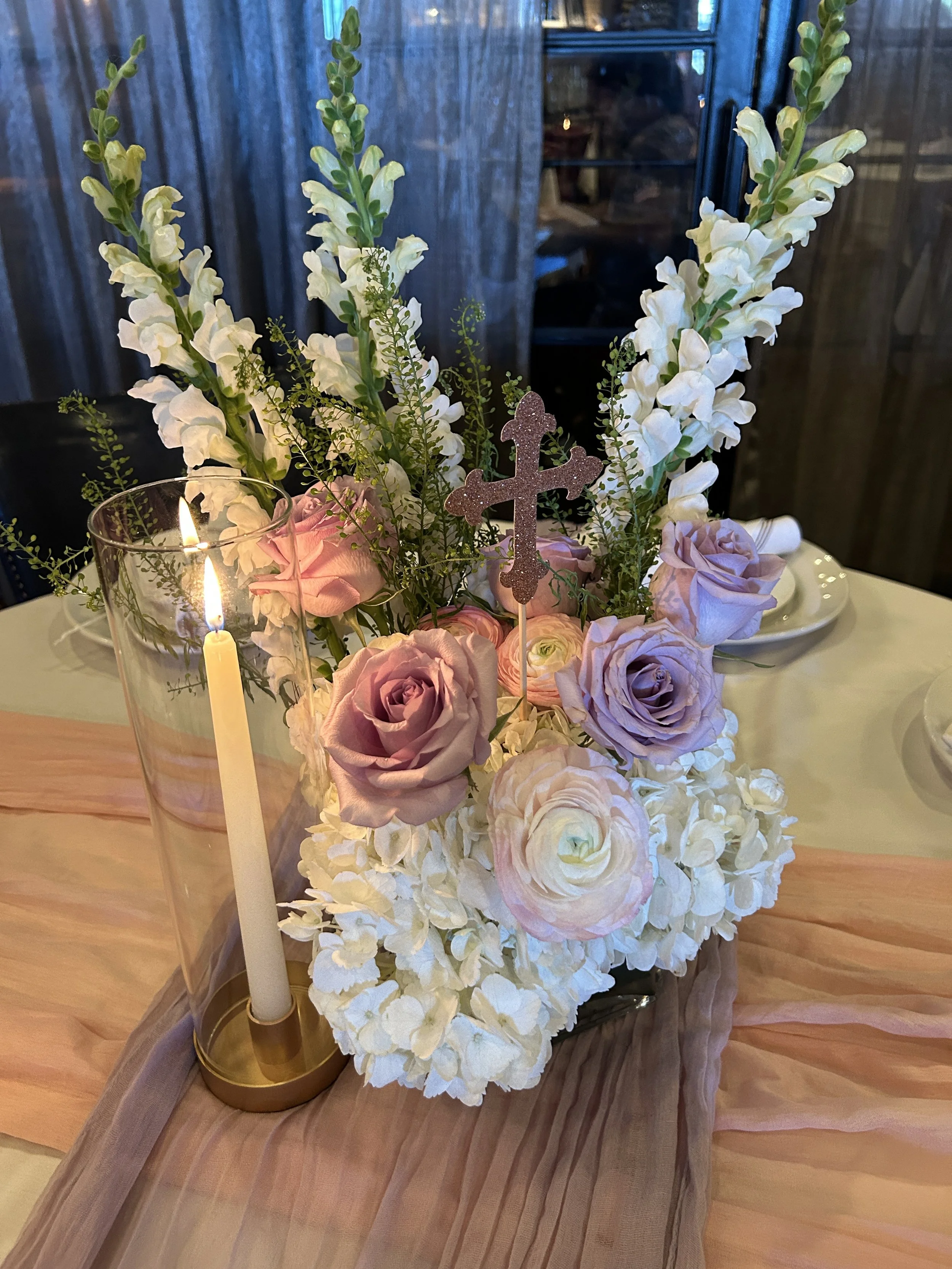 Floral accents elevate events from pretty to unforgettable. Custom centerpieces match your palette and layout; bud vases add charm to place settings and tablescapes. Use blooms in balloon installations for a whimsical touch, or opt for bold focal pieces—large floor pieces, suspended displays and more. Whether subtle seasonal blooms, lush romantic arrangements, or minimalist greenery, floral design brings your event together.
